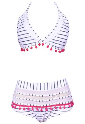 Biquíni Hot Pants Azul/Branco/ Rosa