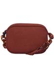 Possui fechamento em zíper e corrente acrílico nas laterais.