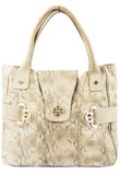 Possui fecho em zíper e botão. Possui estampa com padronagem de cobra.