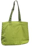 Possui amplo espaço interno e alças estampadas de tecido, bolsa de nylon verde neon.