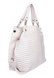 Possui bolso, parte interna com divisória e fechamento em zíper.