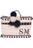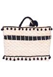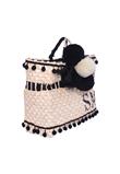 Possui detalhes trançados e pompoms decorativos. Com fecho magnético, alças de mão e bolso interno. Altura: 32cm/ Largura: 42cm/ Profundidade: 15cm/ Alça: 30cm
