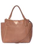 Possui alça de mão e alça transversal. Fechamento por zíper.