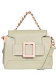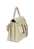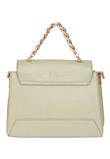 Possui couro estruturado, dois tipos de alças e ferragens douradas