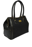 Possui alça curta e fecho em zíper. Possui vários compartimentos internos.