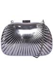Possui acabamento metalizado, fecho por encaixe e alça opcional em corrente.Largura: 7cm/ Altura: 12cm/ Profundidade: 6cm/ Alça: 56cm