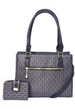Conjunto composto por carteira e bolsa. Bolsa possui alaça de mão,transverssal e bolsos internos e externos. Carteira possui diversas divisorias e fechamento em botão.