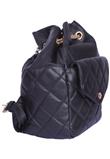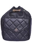 Possui alças de corrente, bolso frontal e ferragens douradas