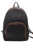 Possui dois bolsos grandes e um bolso externo frontal com ferragens douradas