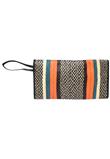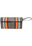 Possui acabamento tressê, fecho por velcro, botão de pressão e alça de mão.Largura: 27,5cm/ Altura: 15cm/ Profundidade: 3cm