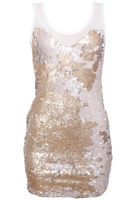 Vestido Cantão Paetês Bege