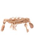 Possui pingentes cadeado, chave, pedra e logo da marca. Possui marcas de uso.