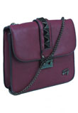 Possui fecho por encaixe, aplicações de tachas e alça em correntes. Comprimento: 18cm/ Altura: 14cm/ Profundidade: 4cm/ Alça tiracolo: 110cm