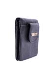 Possui fechamento em botão, repartições para cartão e para colocar dinheiro.