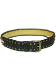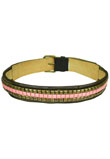 Fecho em fivela, detalhes em spike e corrente redonda, possui marcas de armazenamento.