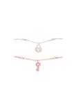 Possui duas pulseiras com pingente de chave, cadeado, uma na cor rose e a outra na cor prata