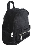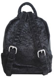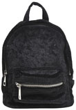Em veludo, possui compartimento frontal e interno, fecho em zíper, alça de mão e alças de ombro reguláveis.