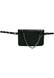 Fecho em zíper, detalhe em corrente, fecho da alça em botão de pressão.