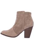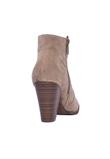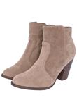 Em camurça, possui bico redondo, salto grosso e fechamento lateral por zíper.Salto:9 cm/ Cano:10 cm/ Circunferência:24 cm