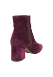 Cabedal em veludo, possui bico redondo, salto grosso e fecho lateral em zíper.