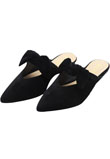 Possui acabamento aveludado, recorte frontal e laço decorativo.