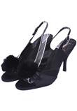 Possui acabamento acetinado, pedraria, fecho em fivela e pompom. Salto: 11cm