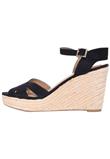 Sandália tipo espadrille, possui fechamento lateral por fivela.Salto: 11cm / Meia Pata: 3cm