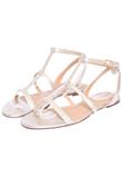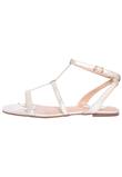 Possui acabamento metalizado dourado e fechamento por fivela.