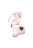 Possui fechamento em amarração e salto anabela.