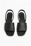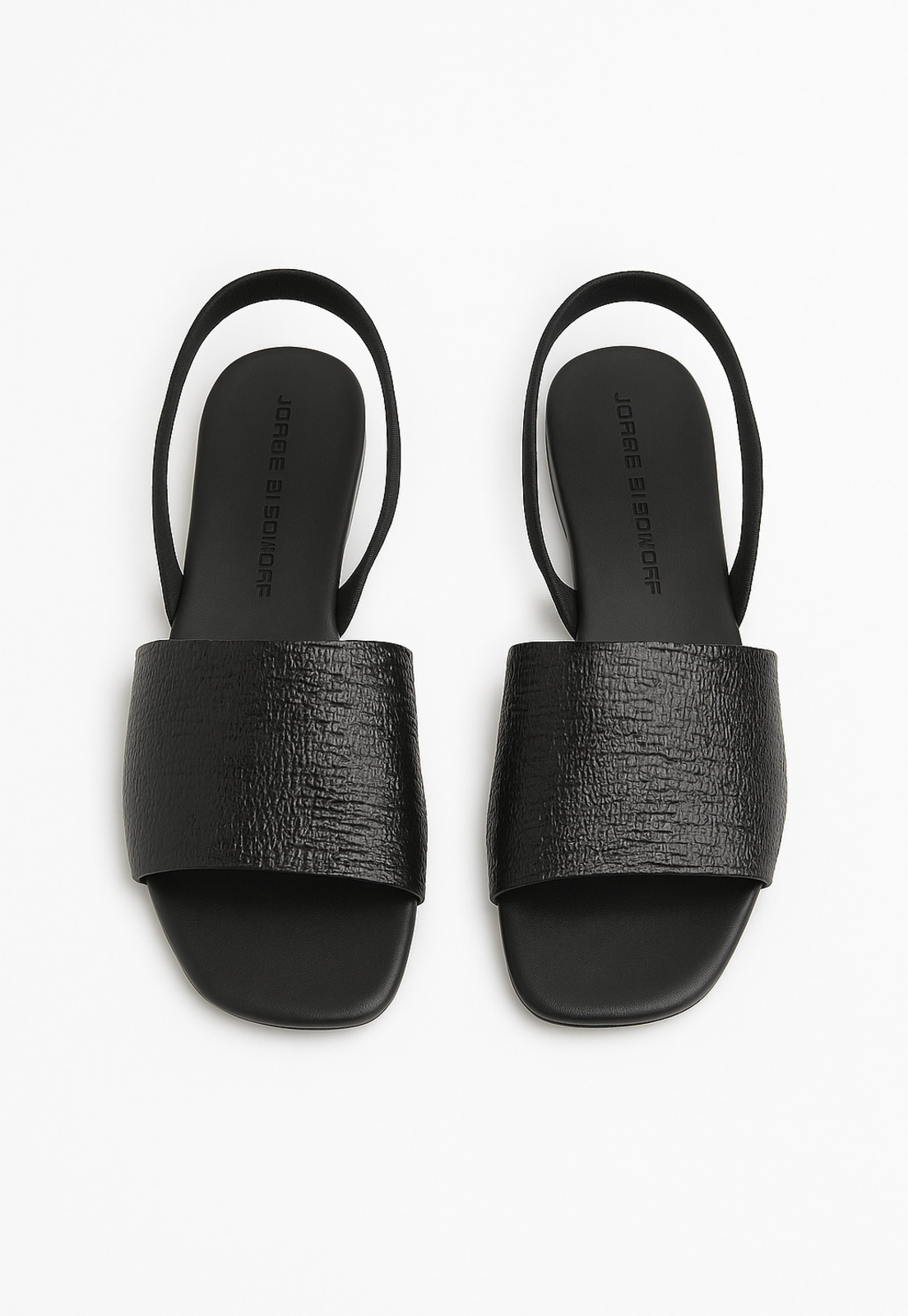 Possui elástico na parte de trás para segurar o pé e dar firmeza.