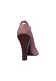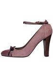 Possui fechamento por fivela, bico arredondado e acabamento em camurça. Salto: 11cm.