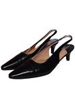 Possui salto fino e fechamento por elástico. Salto: 7cm.