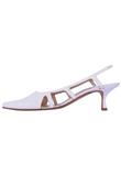 Possui salto fino e fechamento por elástico. Salto: 7cm.