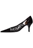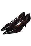 Possui salto fino, bico fino e detalhes de tiras. Salto: 10cm.