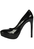 Possui acabamento em verniz e bico tubarão.Salto: 13cm/ Meia-pata: 3cm