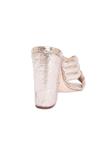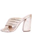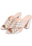 Possui tiras trançadas douradas e salto tijolo.Salto: 10cm