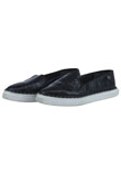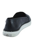 Possui ajuste em elástico e aplicações de tachas. Possui marcas de uso no solado.