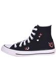 Possui cano longo, amarração cadarço, estrela com pedraria no cadarço