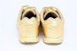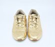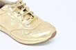 Cabedal com acabamento metalizado e fecho por cadarço.
