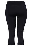 Possui tira para amarração na cintura, bolsa com zíper na parte de trás.
