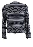 Possui ombreiras, bolsos e pompoms decorativos. Ombro: 12cm/ Manga: 63cm/ Busto: 100cm/ Comprimento: 56cm