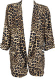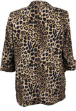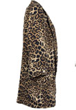 Possui ombreiras, animal print de onça e gola xale.