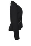 Possui fechamento em botão ,Zíper no punho e bolsos