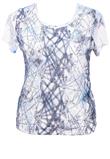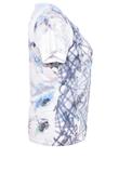 Confeccionada em malha devorê, estampa floral e aplicação frontal em tule. Ombro: 13cm/ Manga: 68cm/ Busto: 148cm/ Comprimento: 88cm