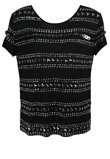 Aplicações metalizadas. Ombro: 12cm/ Manga: 15cm/ Busto: 100cm/ Comprimento: 59cm