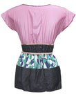 Possui decote V, ajuste em elástico na cintura e recortes contrastantes.Ombro: 4cm/ Manga: 16cm/ Busto: 80cm/ Comprimento: 63cm
