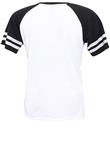 Possui decote V e listras nas mangas.Manga: 31cm/ Busto: 94cm/ Comprimento: 66cm