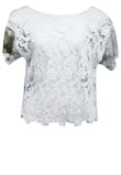 Blusa Espaço Fashion Guipir Branca/Marrom