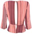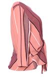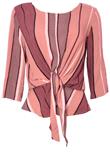 Possui decote nas costas ,fechamento em botão e fita para amarração.