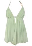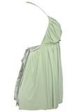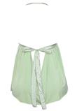Possui regulagem na alça, detalhe em metal dourado e fita para amarração nas costas.